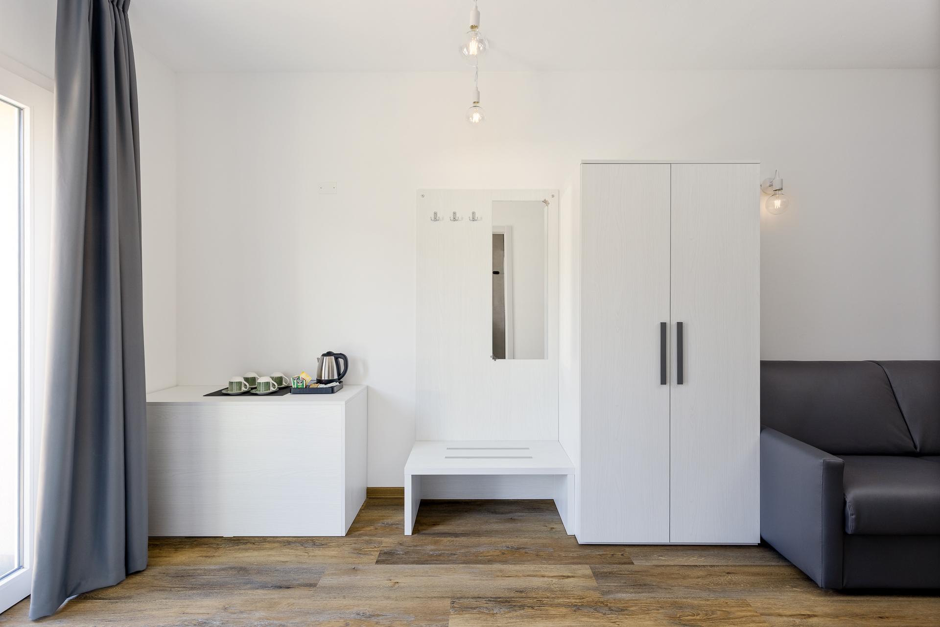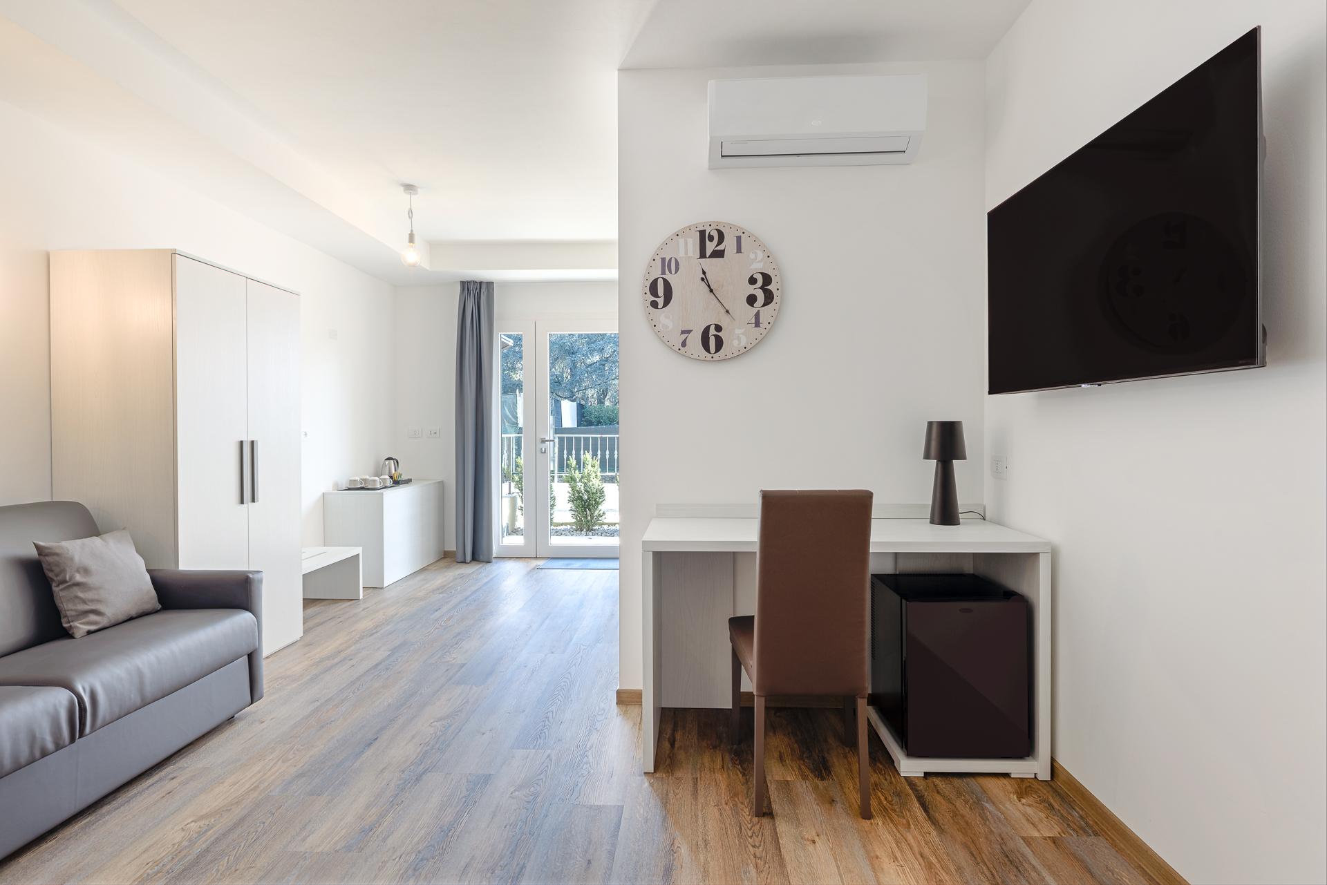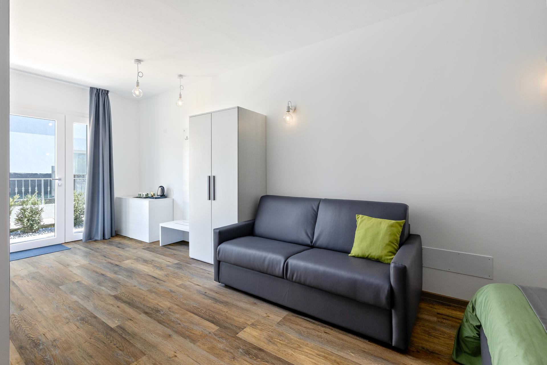 La camera quadrupla dispone di un letto matrimoniale separabile in 2 letti singoli e un divano letto.
