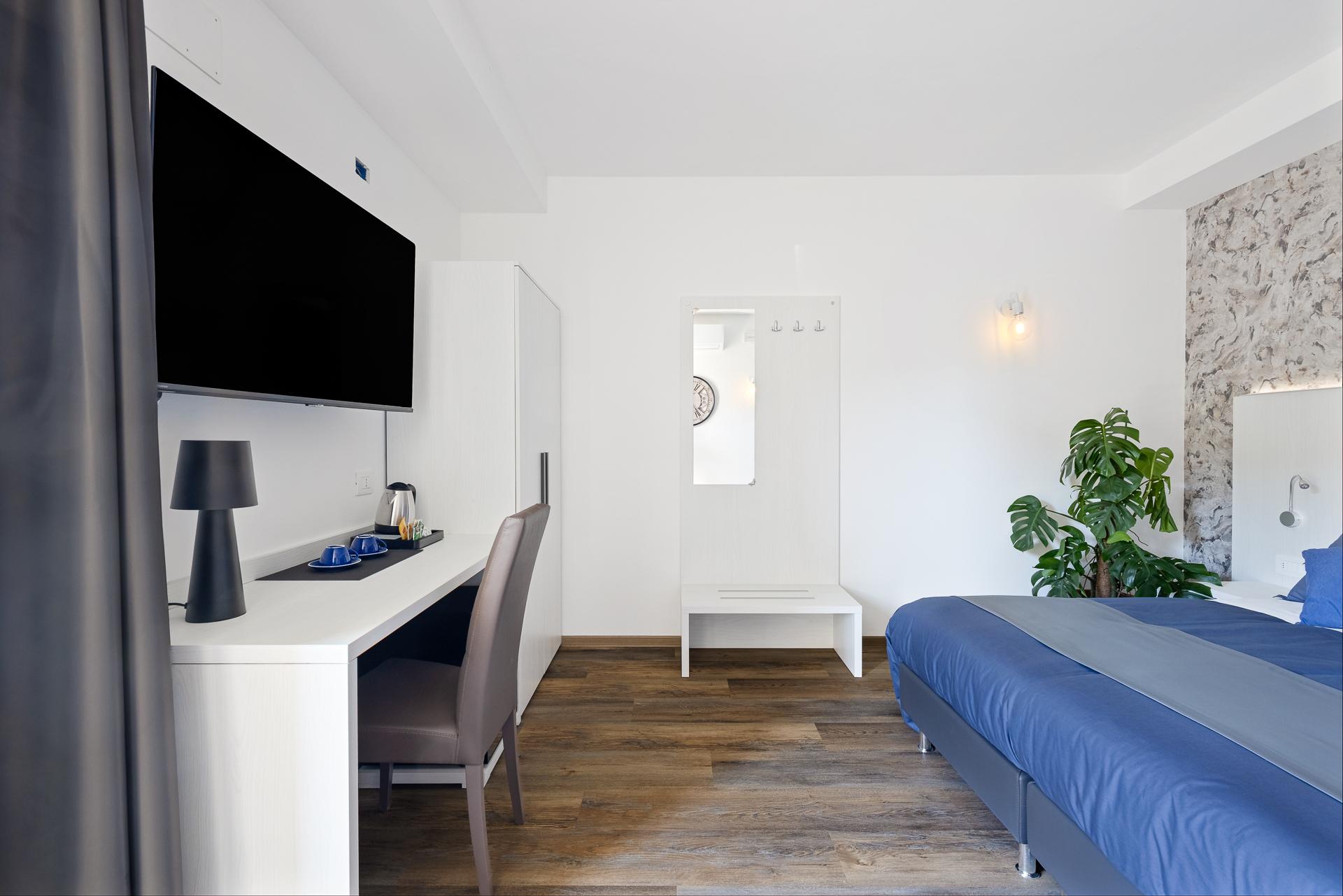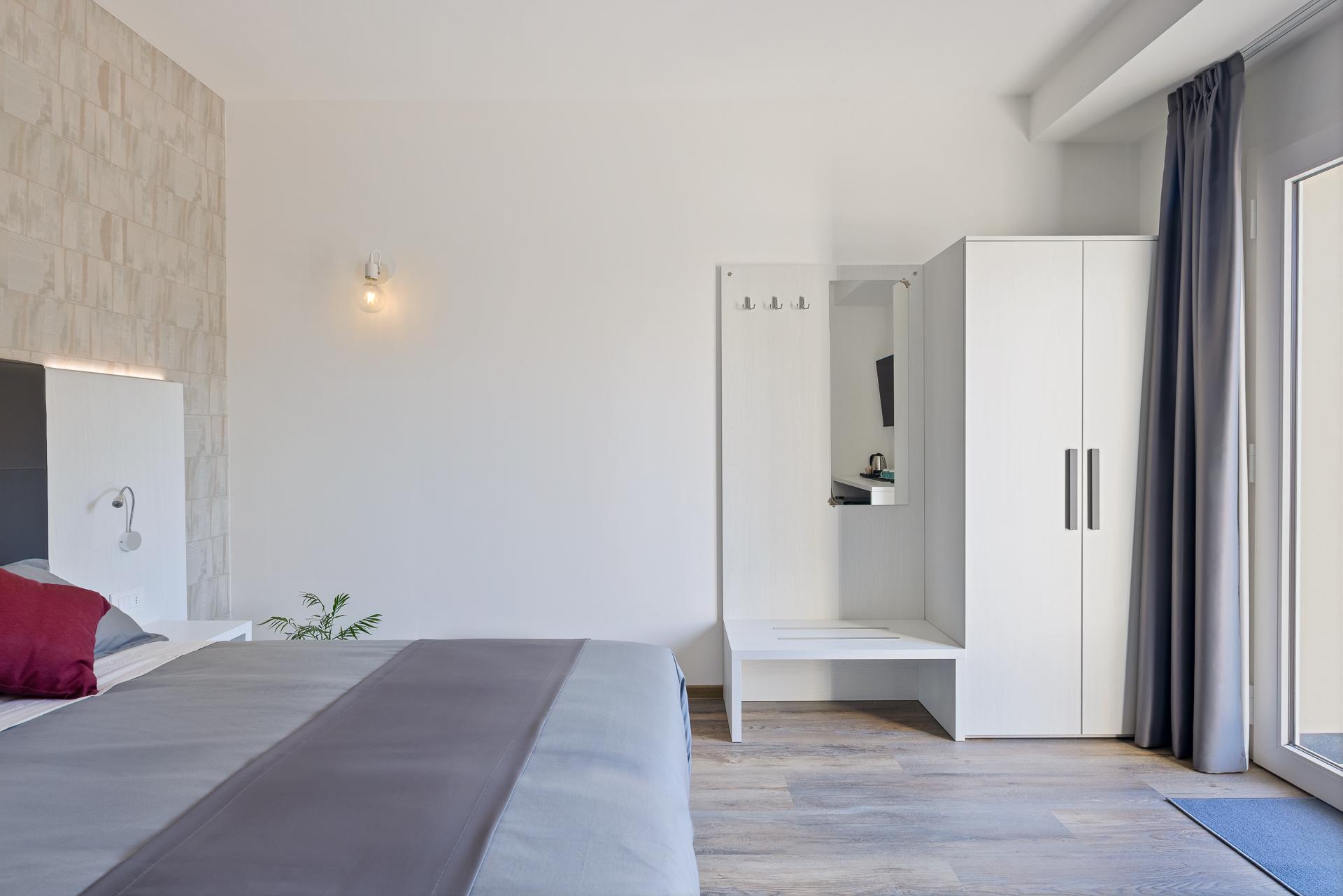 Le Camere Doppie LUXÈA sono la soluzione ideale per chi cerca camere moderne vicino Venezia o un affittacamere a Preganziol in posizione strategica tra Treviso e Venezia. Questa tipologia di stanza è pensata per offrire comfort, flessibilità e tranquillità, ed è perfetta sia per coppie sia per amici o colleghi di lavoro che desiderano soggiornare in una struttura moderna vicino alle principali città del Veneto. La camera doppia può essere allestita in due configurazioni, in base alle esigenze degli ospiti: letto matrimoniale, ideale per coppie in viaggio o soggiorni romantici, oppure due letti singoli separati, perfetti per amici, colleghi o viaggiatori business. Le camere si distinguono per uno stile moderno ed elegante, con ambienti luminosi e curati nei dettagli per garantire un soggiorno rilassante dopo una giornata trascorsa a visitare il territorio. Culla disponibile su richiesta.